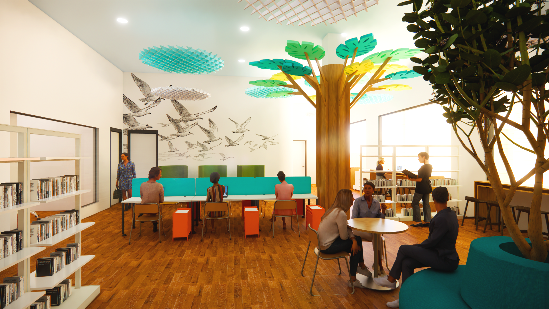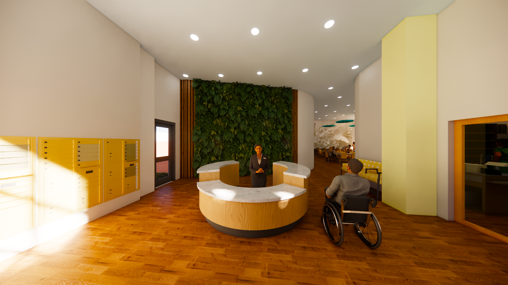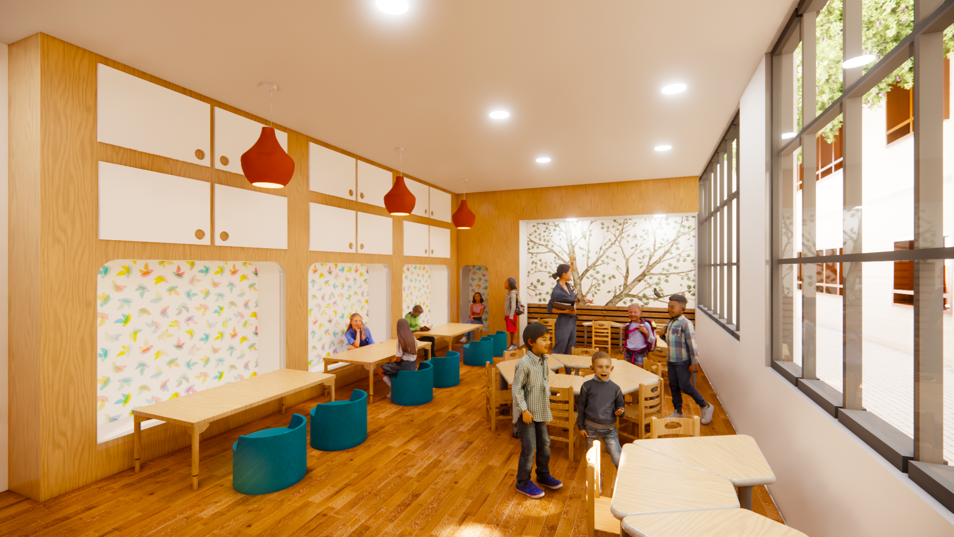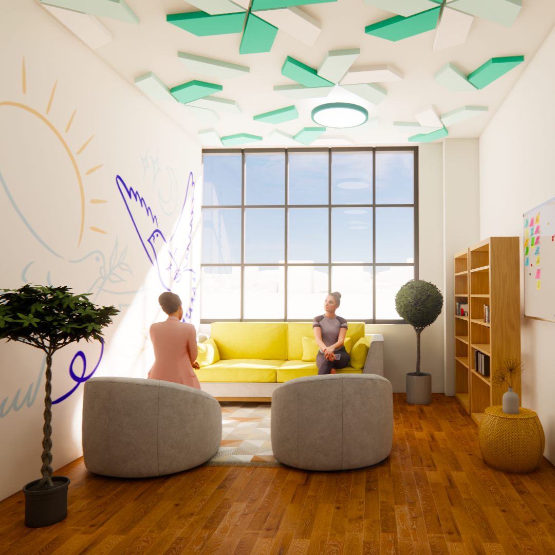 Designed around the architectural concept of "Fly Away" the community center serves as a transformative environment for mothers and children. The facility consists of a central communal hub flanked by two residential buildings designed as "treehouses," creating a symbolic and literal elevation from past circumstances. This center integrates comprehensive support services, including a vocational business center with a library and a boutique thrift shop for professional preparation. Mental health is prioritized through dedicated therapeutic suites, a quiet room, and a clinical exam room, complemented by a specialized daycare for children under four.